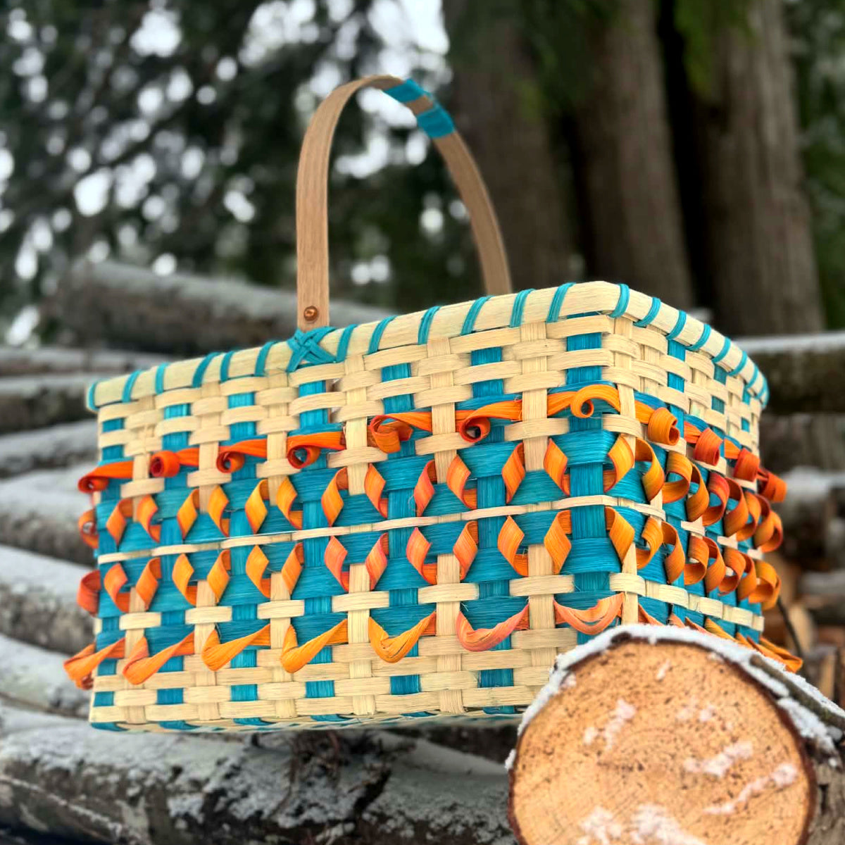 Is a beginning-level kit that blends the warm hues of the Southwest with delicate Native and Japanese-inspired embellishments to create a visually striking, approachable weaving project. Designed for first-time weavers, the kit includes everything needed to complete a sturdy decorative market basket in a palette of burnt orange, deep sienna, sunlit gold, and turquoise, and guides you through basic weaving and finishing techniques with clear, step-by-step instructions and full-color photos.